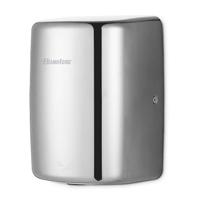 Potenza massima 1350W - Asciuga le mani in 10 - 15 secondi. Velocità dell'aria 60 m/s. Temperatura aria 20 ~ 40 °C. Scocca esterna in acciaio inox 304 lucido. Grado di protezione IPX1. Bassa rumorosità (68,5dB@1 m). Spegnimento automatico dopo 45s di uso continuo. Peso 3,0 kg. Dimensioni: 255 x 170 x 150. 220-240V, 50/HZ.