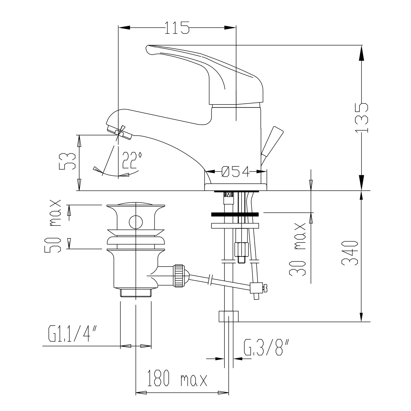 Miscelatore monocomando lavabo EDEN con scarico automatico FROMAC