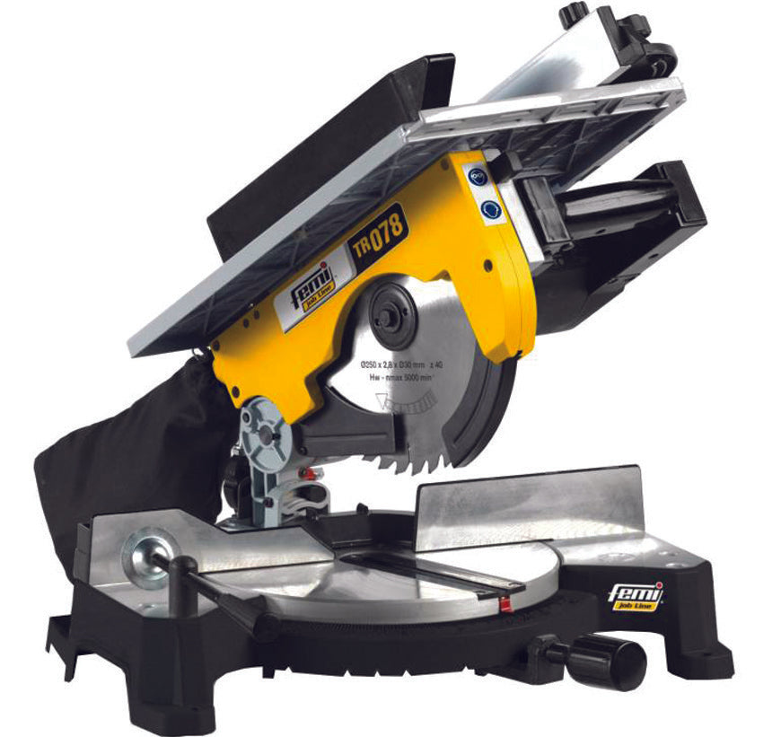 1800w di potenza - compatta e leggera - struttura in alluminio pressofuso - piano girevole con regolazione di precisione dell'angolazione per tagli obliqui - in dotazione: morsetto orizzontale, spingilegno, chiavi di corredo, sacchetto raccoglipolvere, barre di appoggio laterali - peso Kg.15 - taglio MAX mm.145x70 - lama ø mm.250 - altezza di taglio piano superiore mm.40